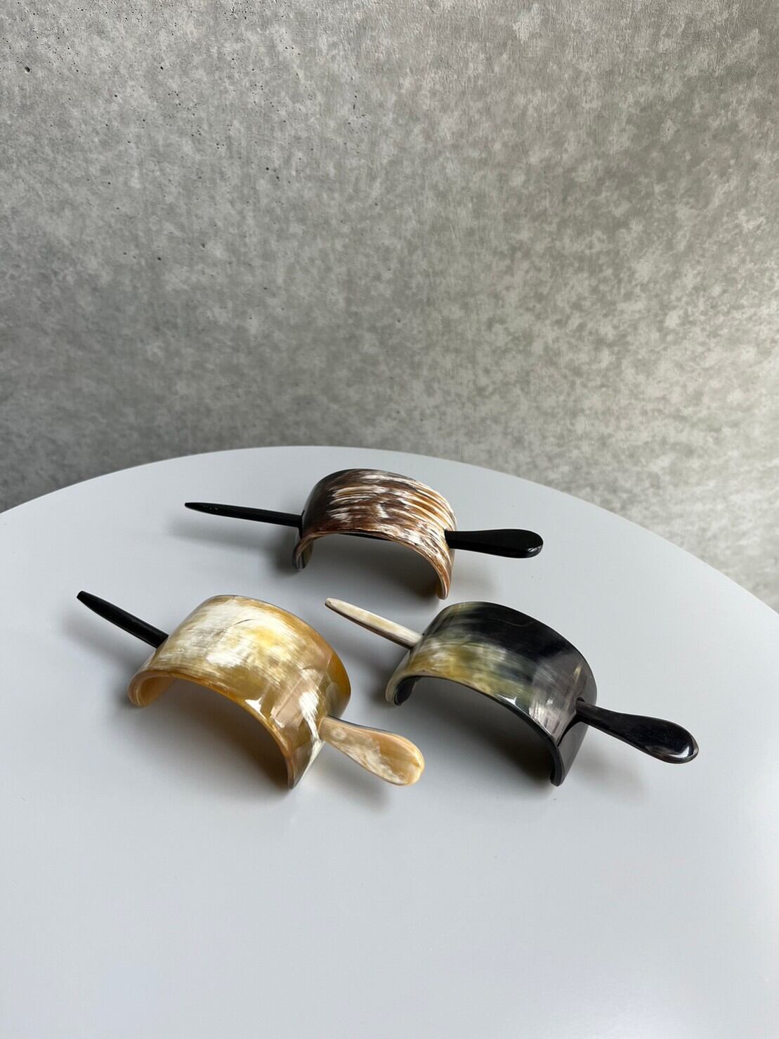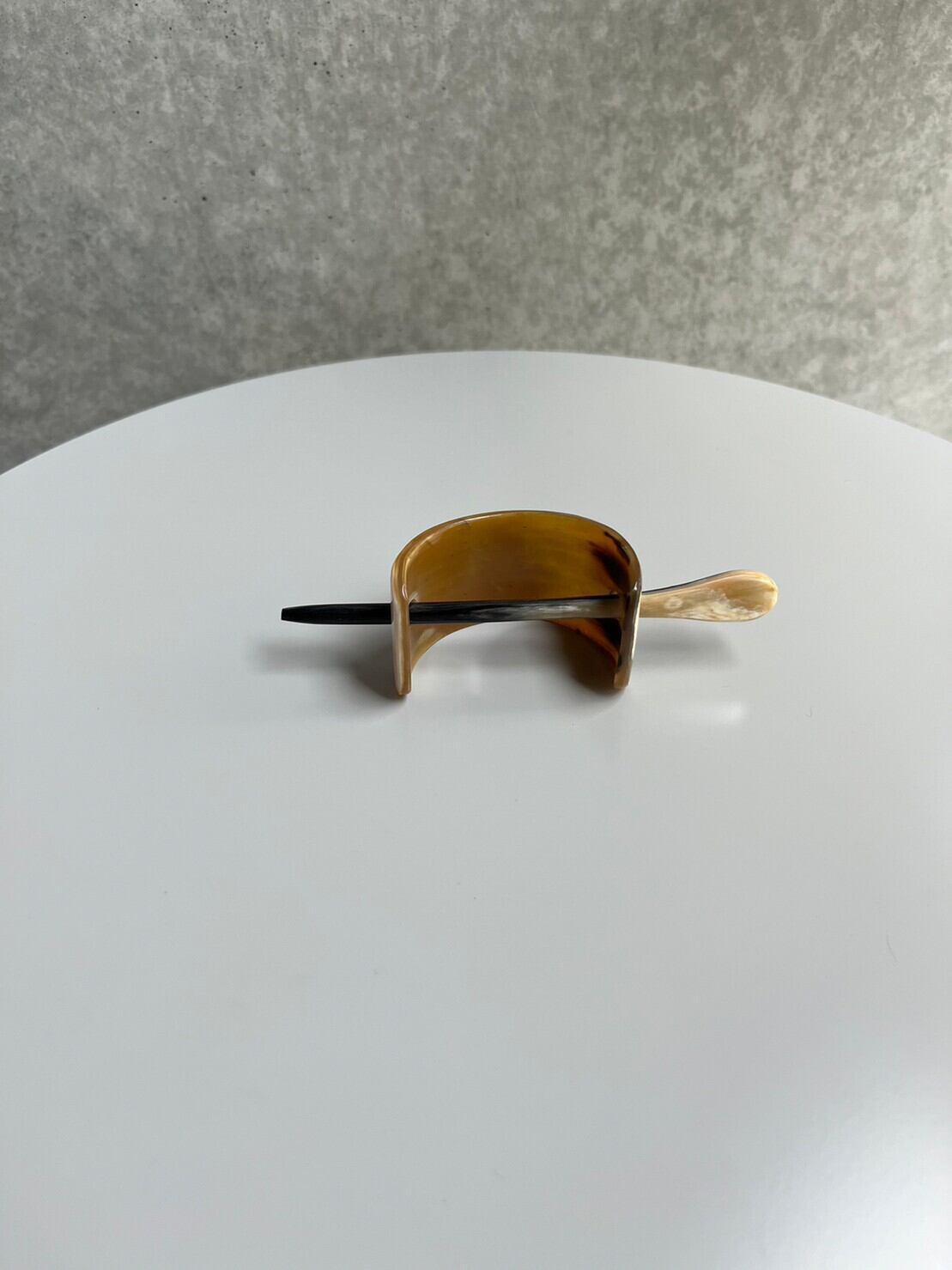 WATER BUFFALO HORN MODELは水牛の角を真ん中から開き、熱を加えプレスし、研磨を繰り返すことで滑らかな絹のような手触りに仕上げています。